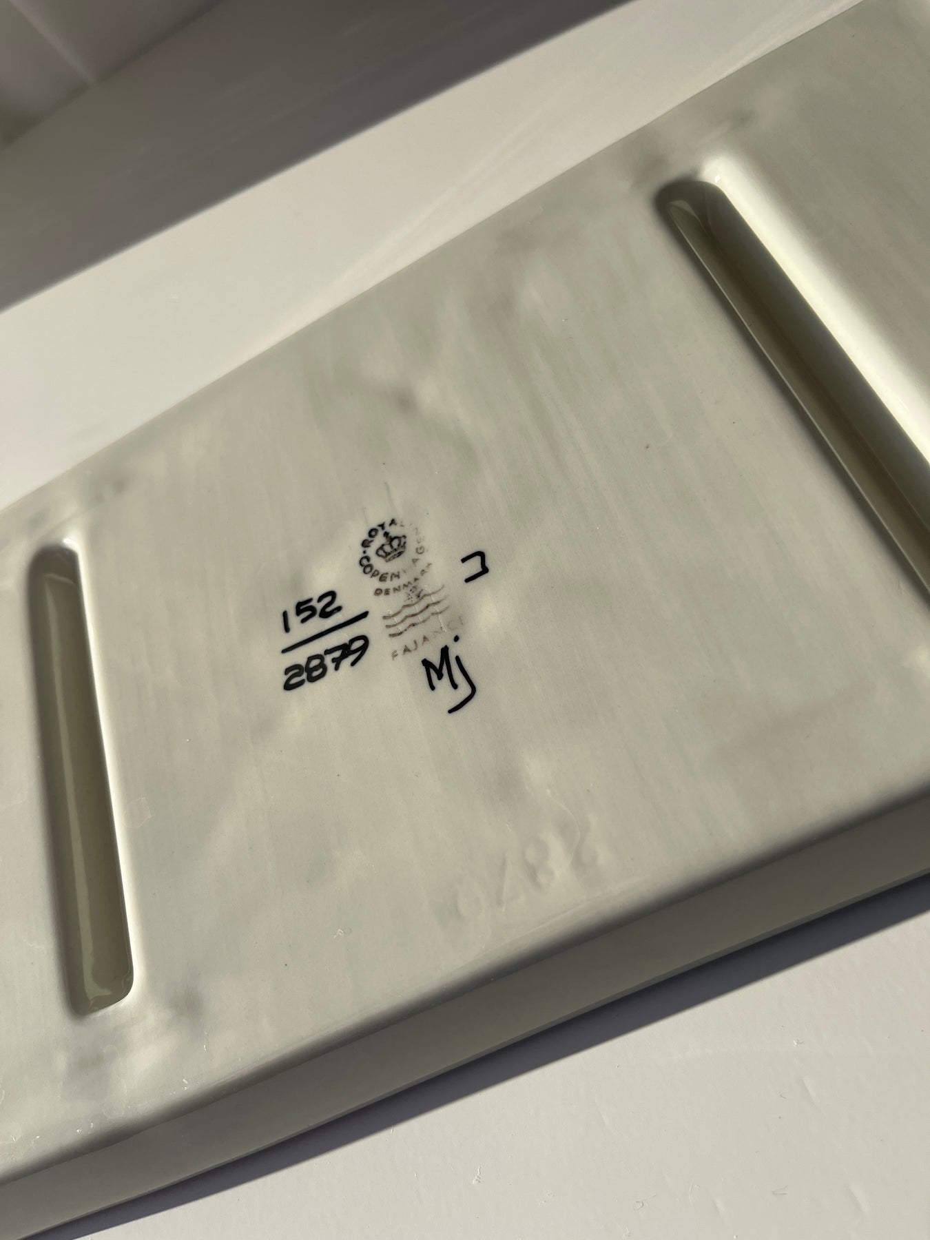 Dette Royal Copenhagen ‘Tenera’ fajancefad er designet af Marianne Johnson. Fadet er fremstillet i fajance med et enkelt, stilrent design og subtile detaljer, der fremhæver både funktionalitet og æstetik. Det er velegnet til servering eller som dekorativt element i hjemmet.