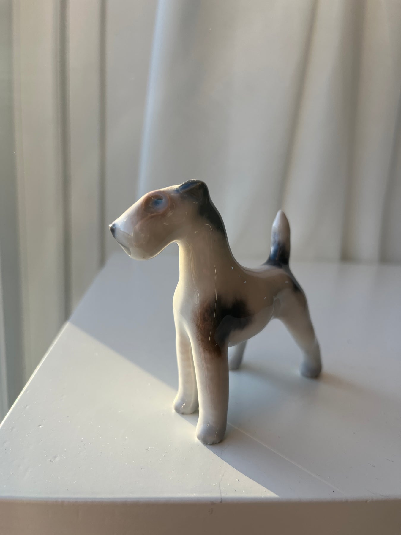 Figuren ruhåret terrier er fremstillet af Royal Copenhagen.