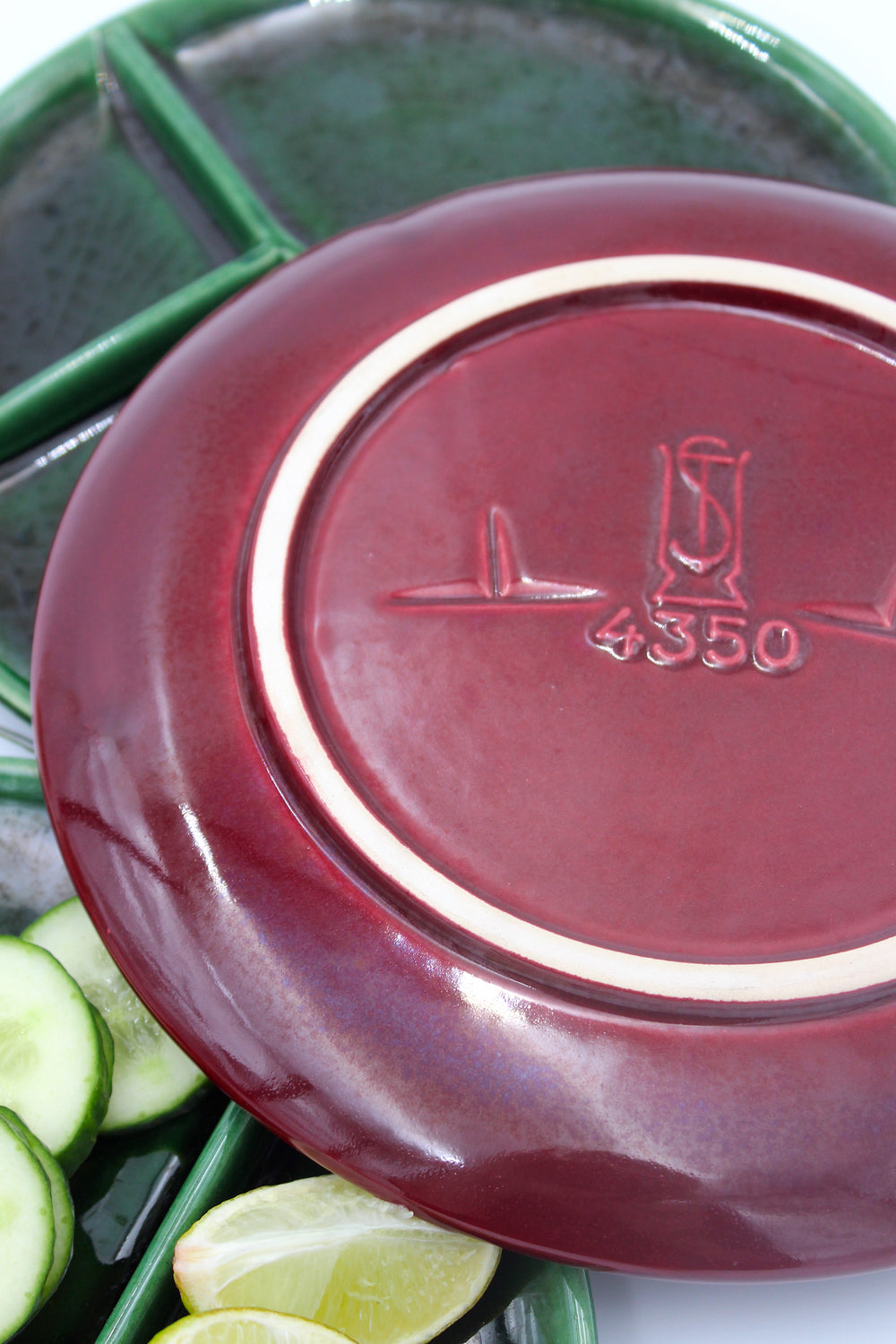 Drei wunderschöne Servierteller, zwei in frischen Grüntönen und einer in tiefem Burgunderrot. Perfekt zum Präsentieren von Snacks, Vorspeisen oder leckeren Köstlichkeiten. Verleihen Sie Ihrem Tisch Farbe und Eleganz mit diesen schlichten, stilvollen Tellern.