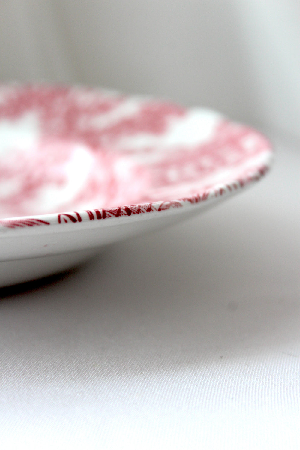 Tiefer Teller „Coaching Days“ von Staffordshire mit rotem Motiv. Dieser Teller kombiniert klassische englische Keramik mit detaillierten Illustrationen historischer Fahrszenen. Mit seinem bezaubernden Vintage-Look eignet es sich sowohl für den täglichen Gebrauch als auch als dekorativer Teil Ihrer Sammlung.