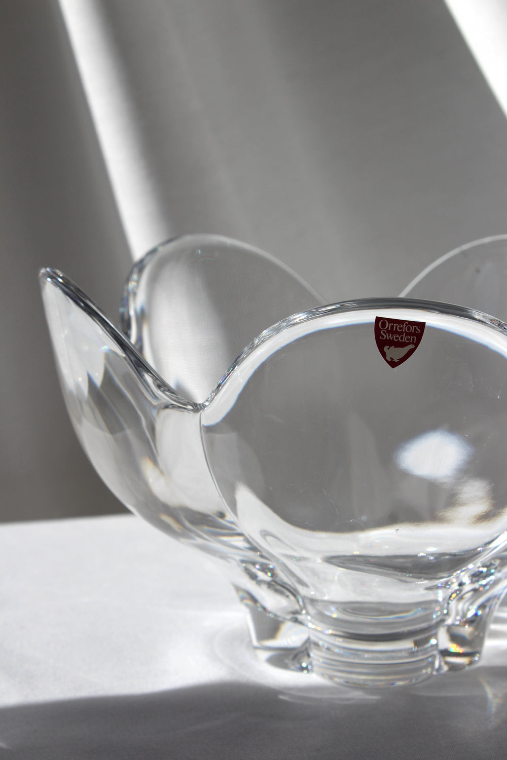 Die Kristallschale „Pomona“ von Orrefors ist ein zeitloser Klassiker mit ihrer schönen, klaren Glasstruktur, die das Licht elegant reflektiert. Diese Schüssel hat einen kleinen Kratzer (siehe Bilder), behält aber dennoch ihren Charme und ihre Funktionalität. Perfekt zum Servieren oder als dekoratives Element, das Ihrem Zuhause einen Hauch skandinavischen Designs verleiht. Design von Lars Hellsten.
