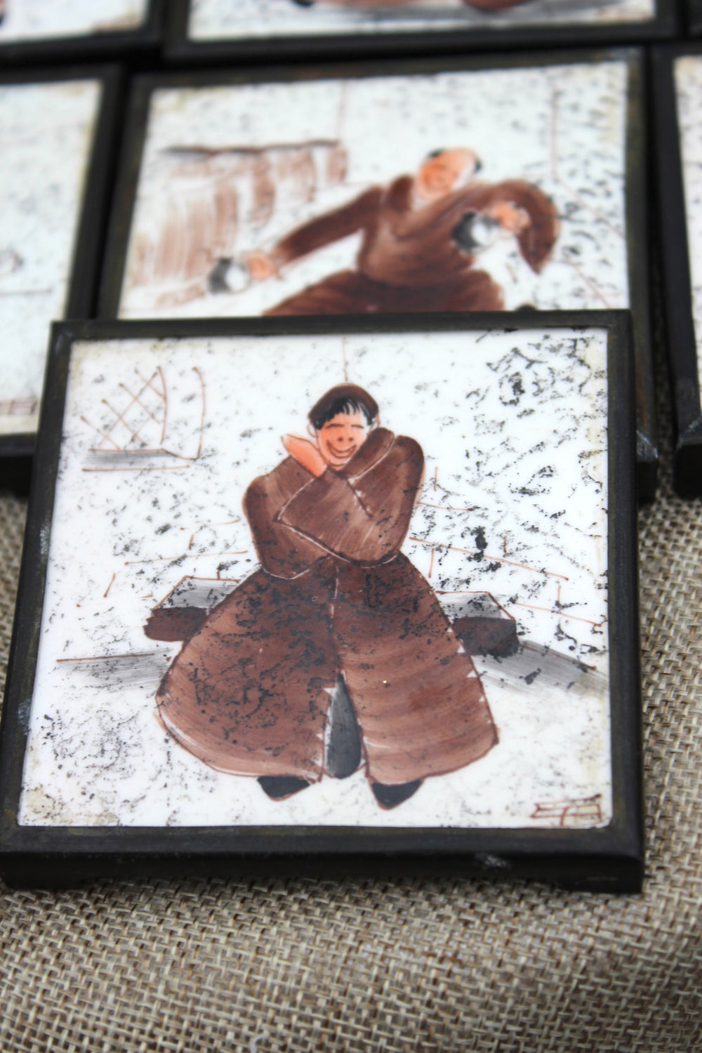 Die Bierfliese besteht aus Fliesen und ist von einem Eisenrahmen umgeben.