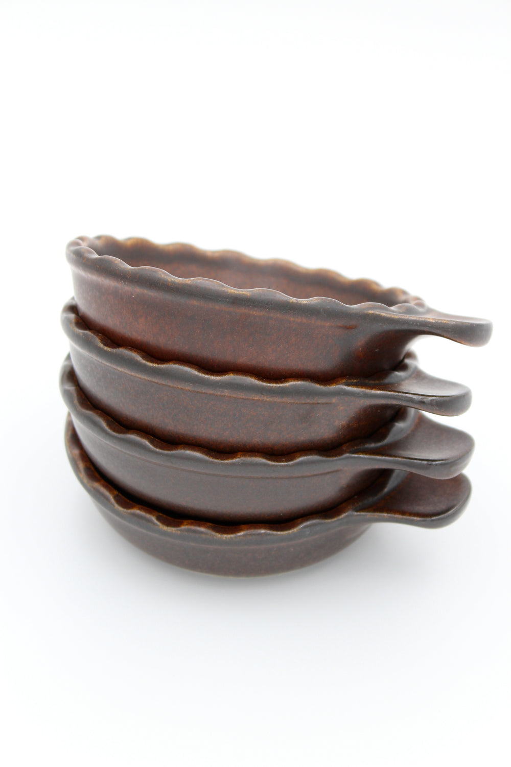 Schaffen Sie mit 4 Teilen eine herausragende Ästhetik auf Ihrem Esstisch. Schalen von Friesland Melitta. Diese wunderschönen Keramikschalen vereinen Funktionalität mit klassischem Design und sind das perfekte Accessoire zum Servieren beispielsweise einer Crème Brûlée.
