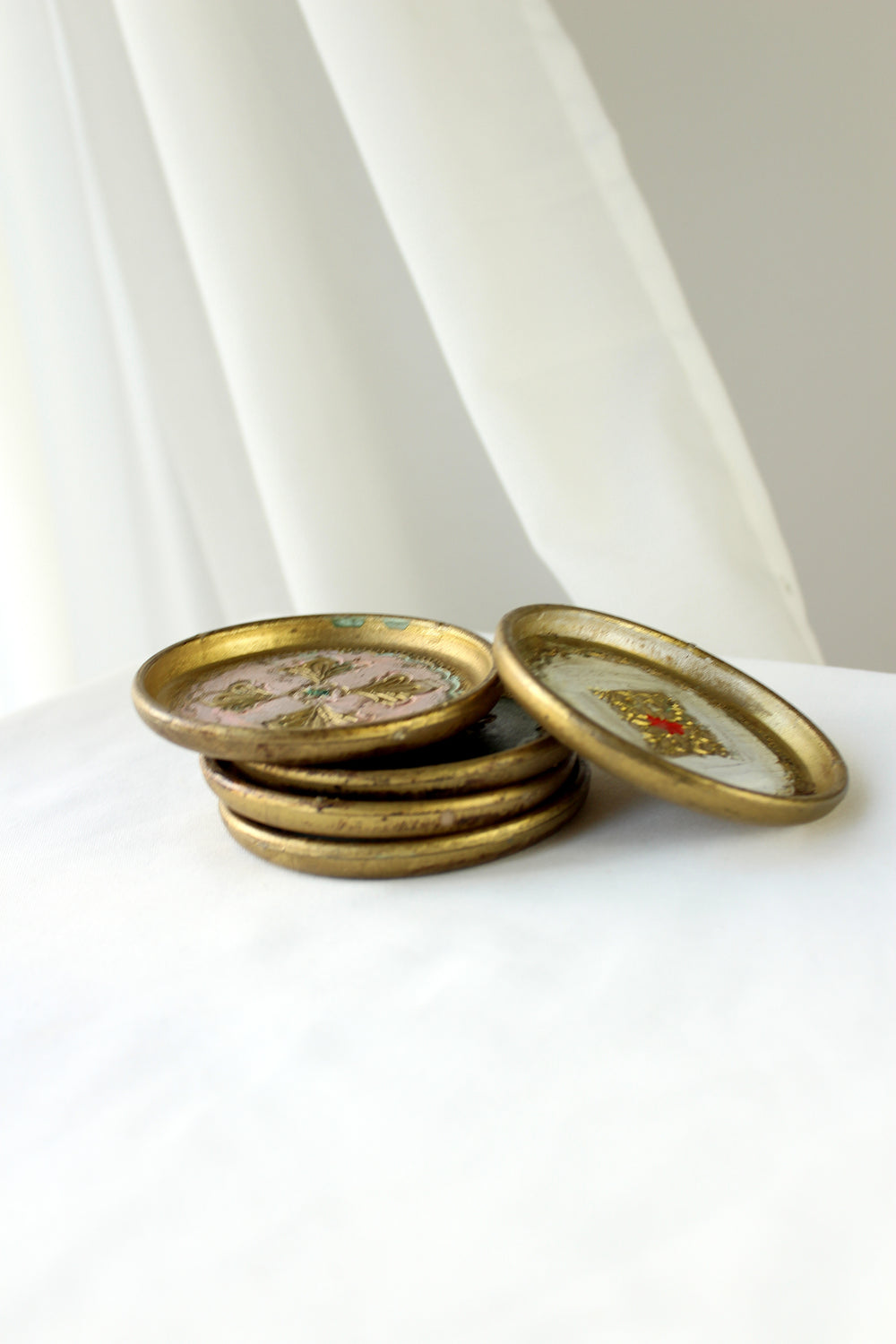 Dette sæt af 5 vintage 'Barok' glasbrikker har et rundt design med fine detaljer, der bringer et klassisk præg til borddækningen. De beskytter overflader og tilføjer samtidig et dekorativt element, perfekt til både hverdag og særlige anledninger.