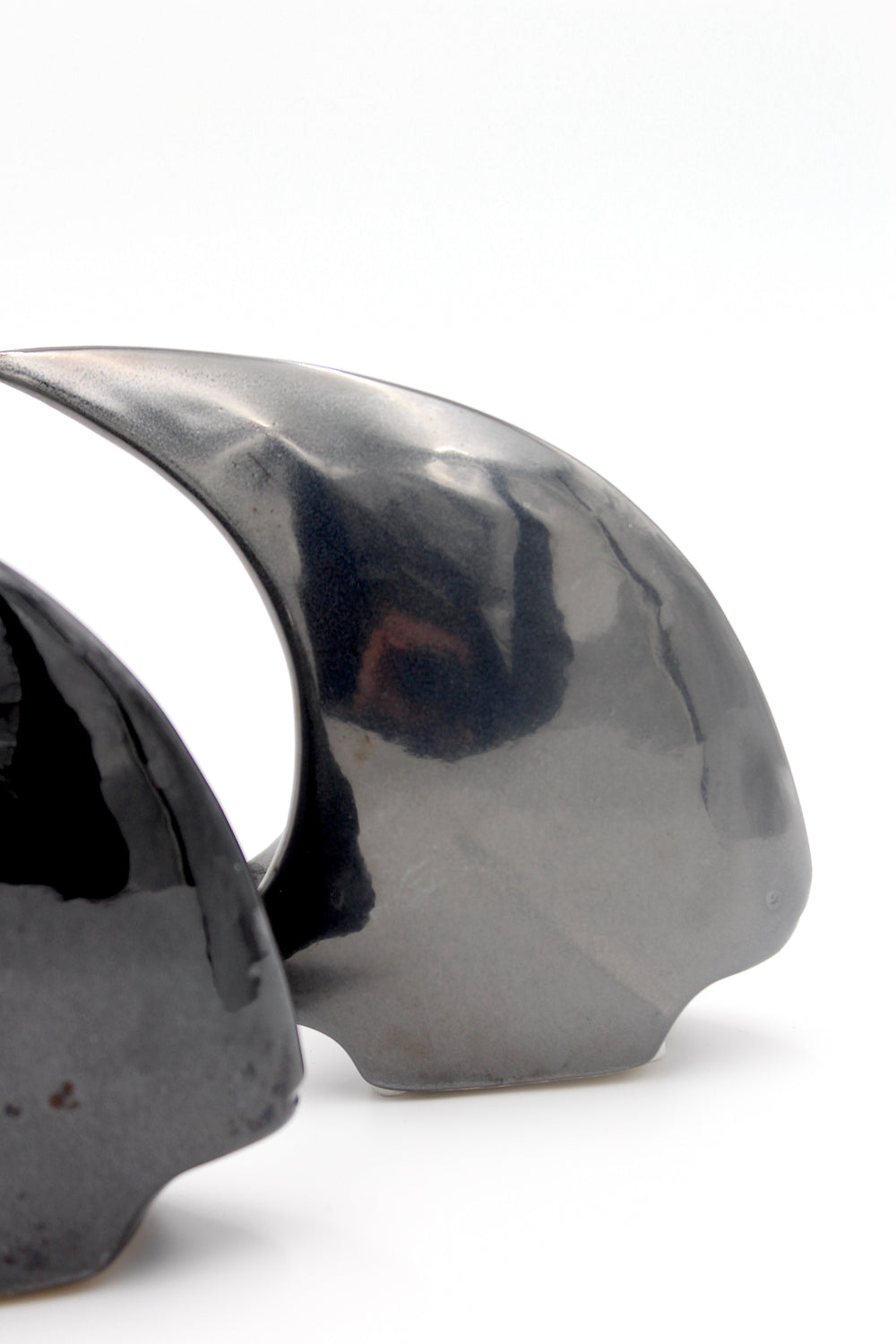 Faszinieren Sie Ihr Zuhause mit diesen 2 schwarzen Vintage-Keramik-Dekohaien. Diese eleganten Haie mit glatter Oberfläche passen perfekt zusammen und verleihen Ihrer Einrichtung Stil und Charakter. Eine einzigartige dekorative Note für Ihr Zimmer.